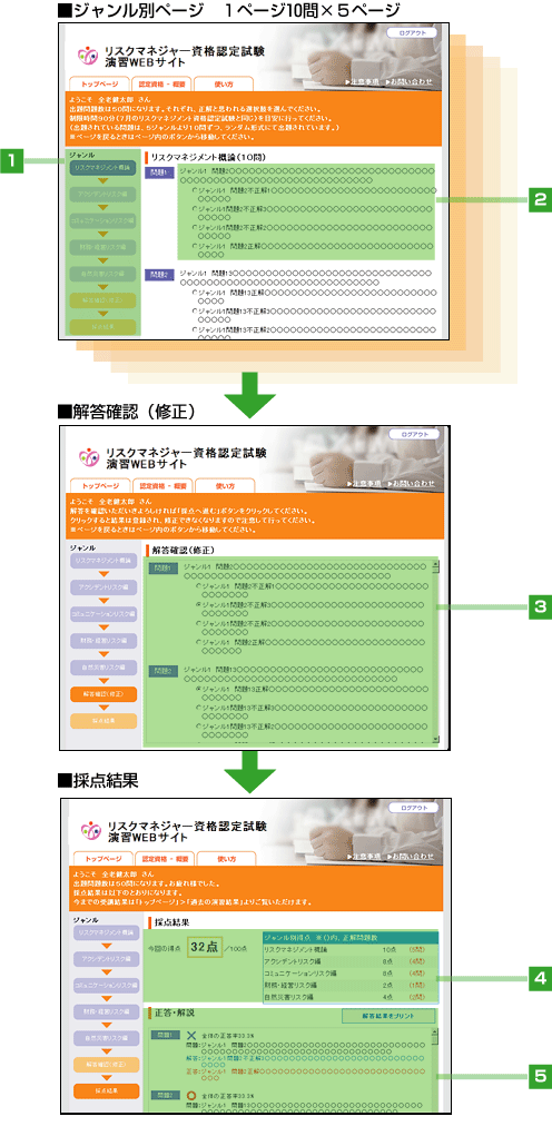 選択されていない問題がある場合には、次のページには進めません。 - 5ジャンル解答後、解答確認ページが表示されます。