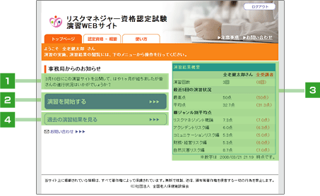 トップページの「演習を開始する」ボタンをクリックすると演習が開始されます。